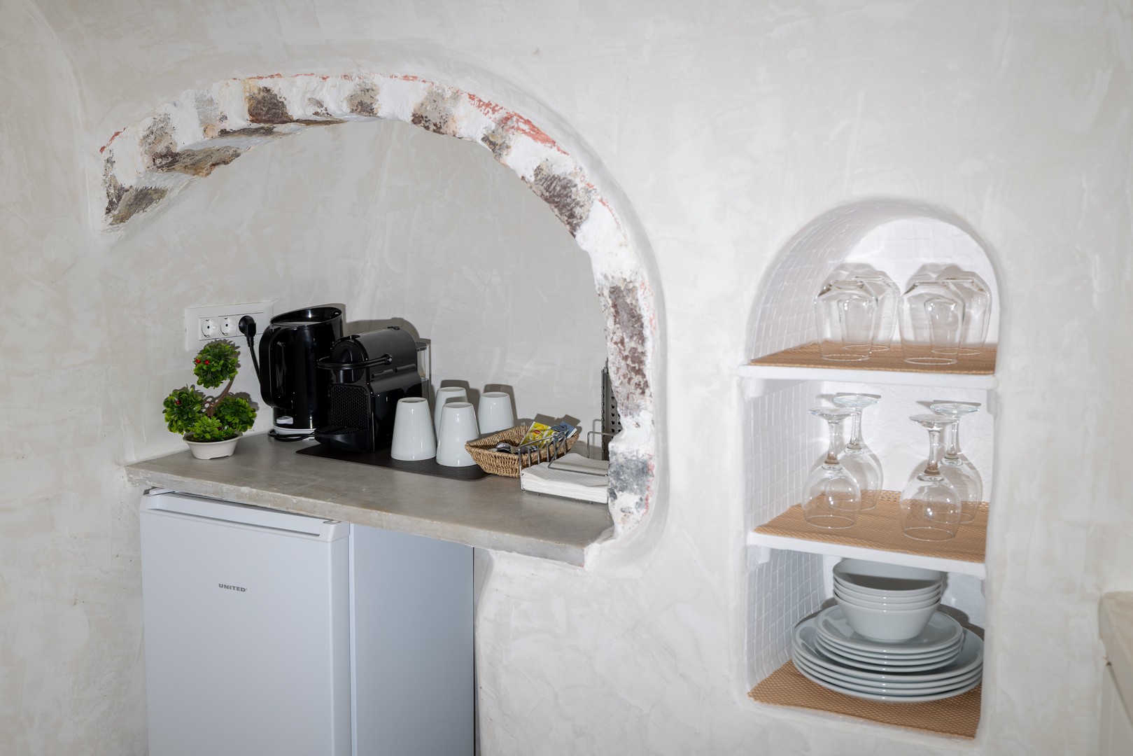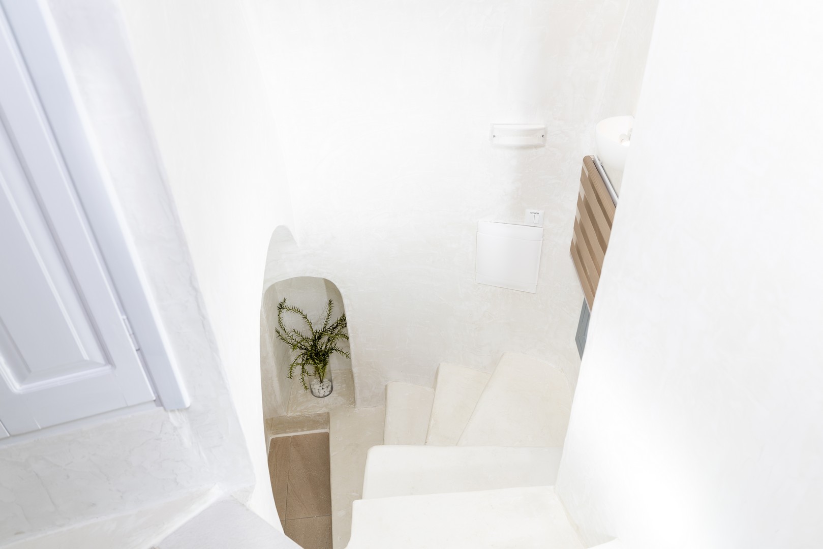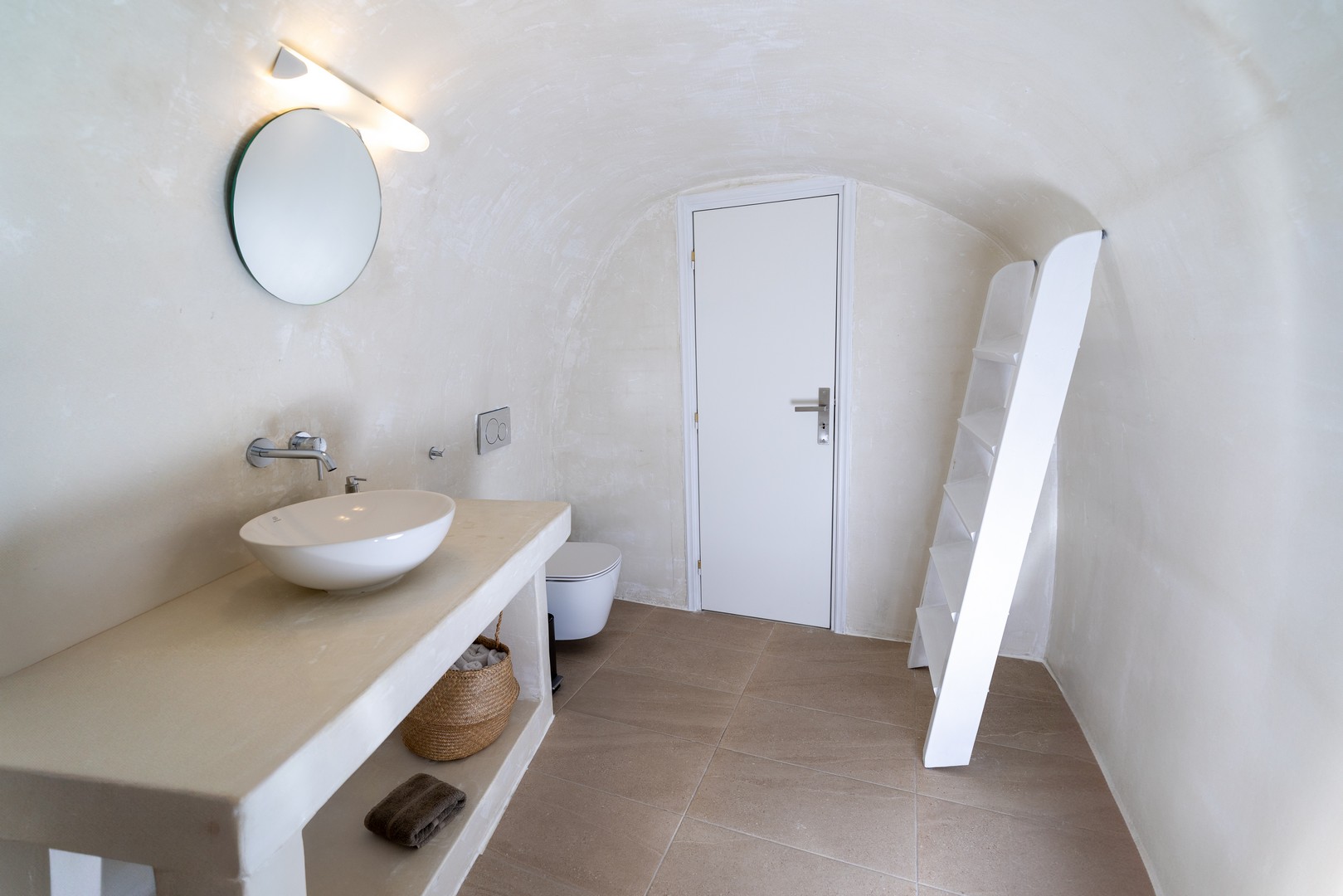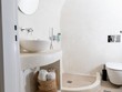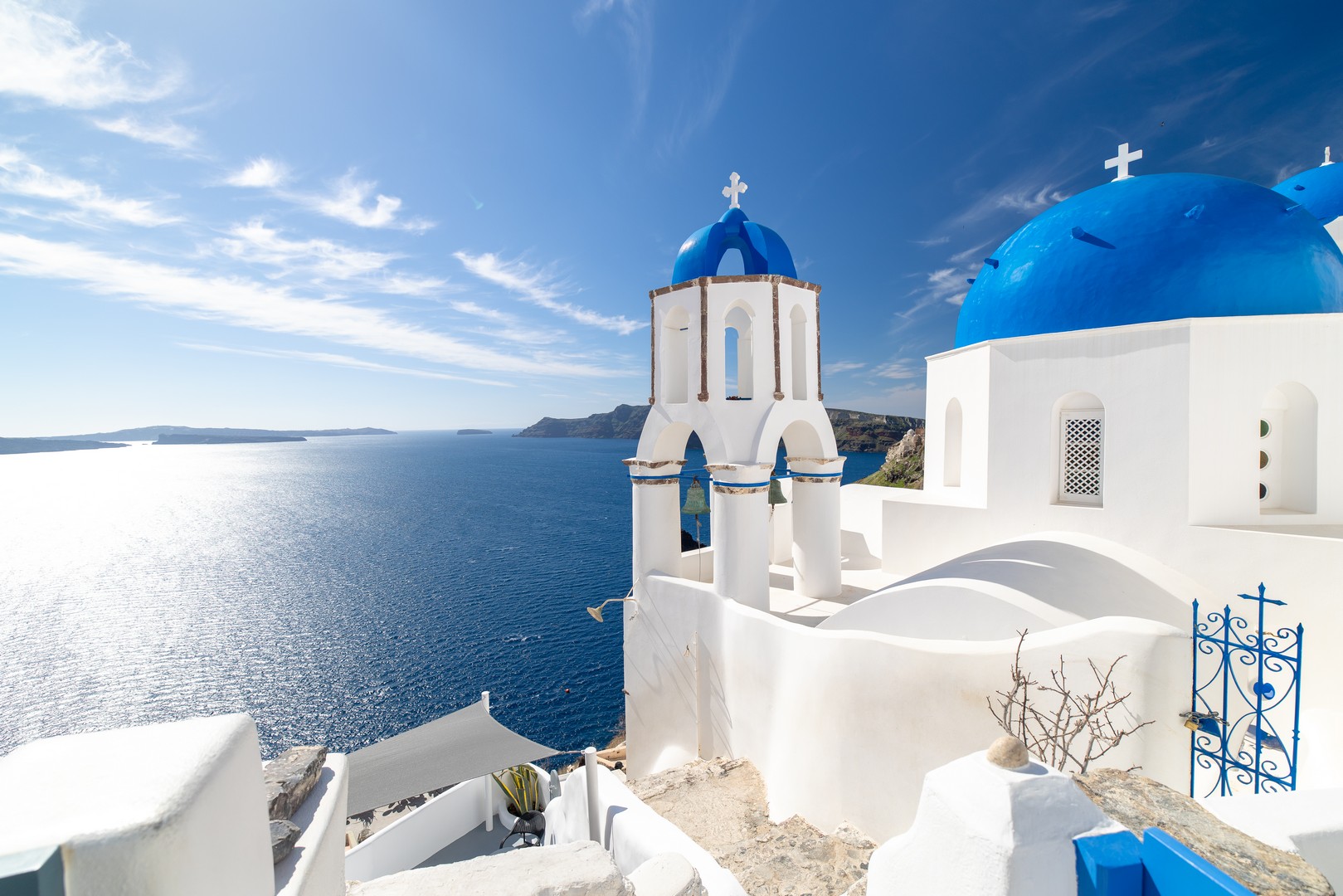 Santo Blue Horizon villa is found in the heart of Oia, at an exceptional location and has an amazing view. The three church domes exactly in front of the villa with the panoramic view have enchanted visitors and photographers from around the world, making it one of the most famous spots of Santorini. The property is in complete harmony with the natural environment of the area, and follows the rules of traditional Cycladic architecture. The villa is made up of two units. One is a traditional house-cave and one a studio, which combined can accommodate up to 7 people. The traditional house is 80sq.m., can accommodate 4 persons and has a private entrance, a big outdoor Jacuzzi for up to 4 persons, a spacious living room, a fully equipped kitchen and 2 bedrooms with a double bed and ensuite bathroom in each. The first bedroom has a large ensuite bathroom with Jacuzzi-hydromassage, while the second bedroom has an ensuite bathroom with shower. The "hot spot" of the traditional cave-house is a tunnel which leads to the upper level where there is a balcony and veranda with a magical view of the Aegean Sea, the Caldera, and is ideal for dinner and relaxation. The second unit of the Santo Blue Horizon villa, is a studio of 25sq.m., which has its own private entrance. It can accommodation up to 3 persons and features a bathroom with shower, a large double bed in a wooden loft and a spacious living room with a single bed. Both units are beautifully decorated and fully equipped. The traditional house-cave and the studio are only available for joint rental, not separately.
