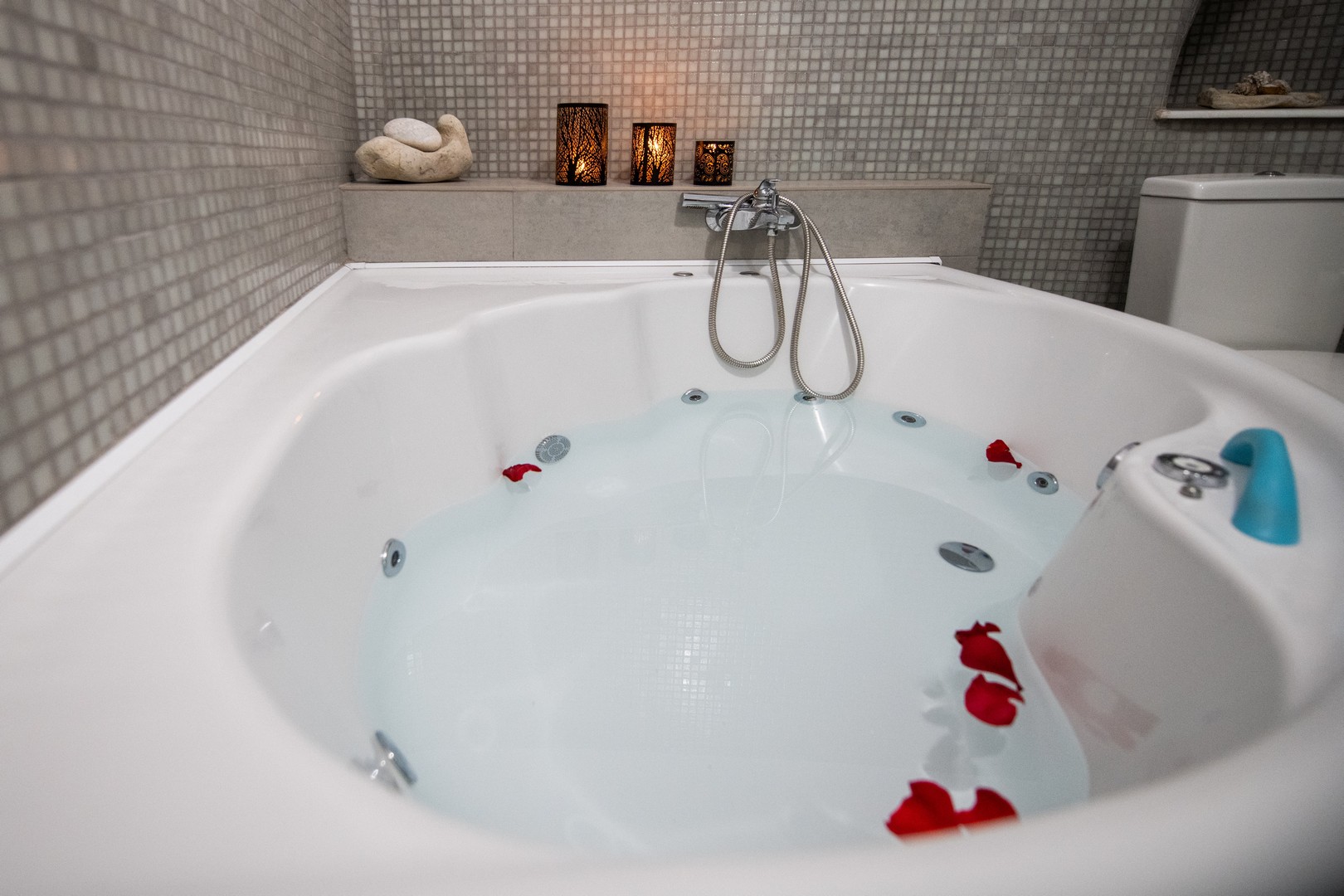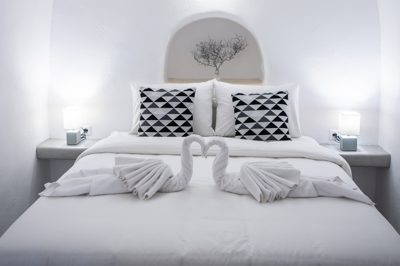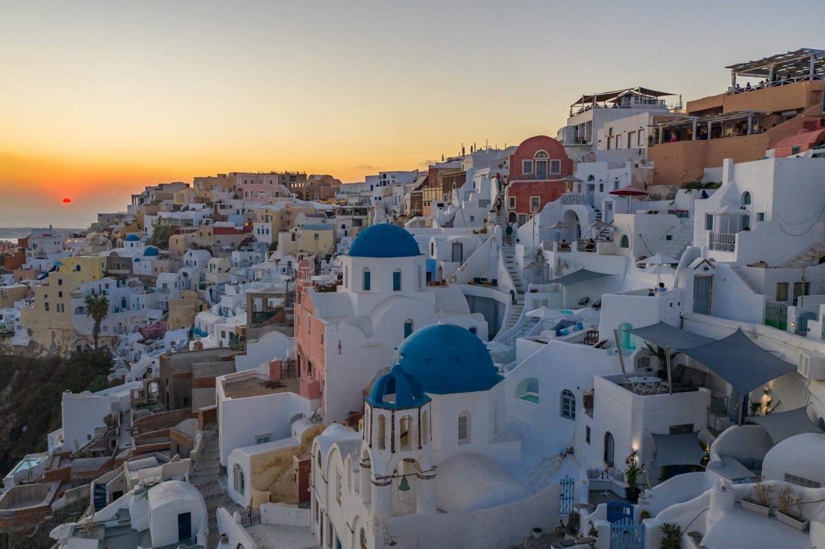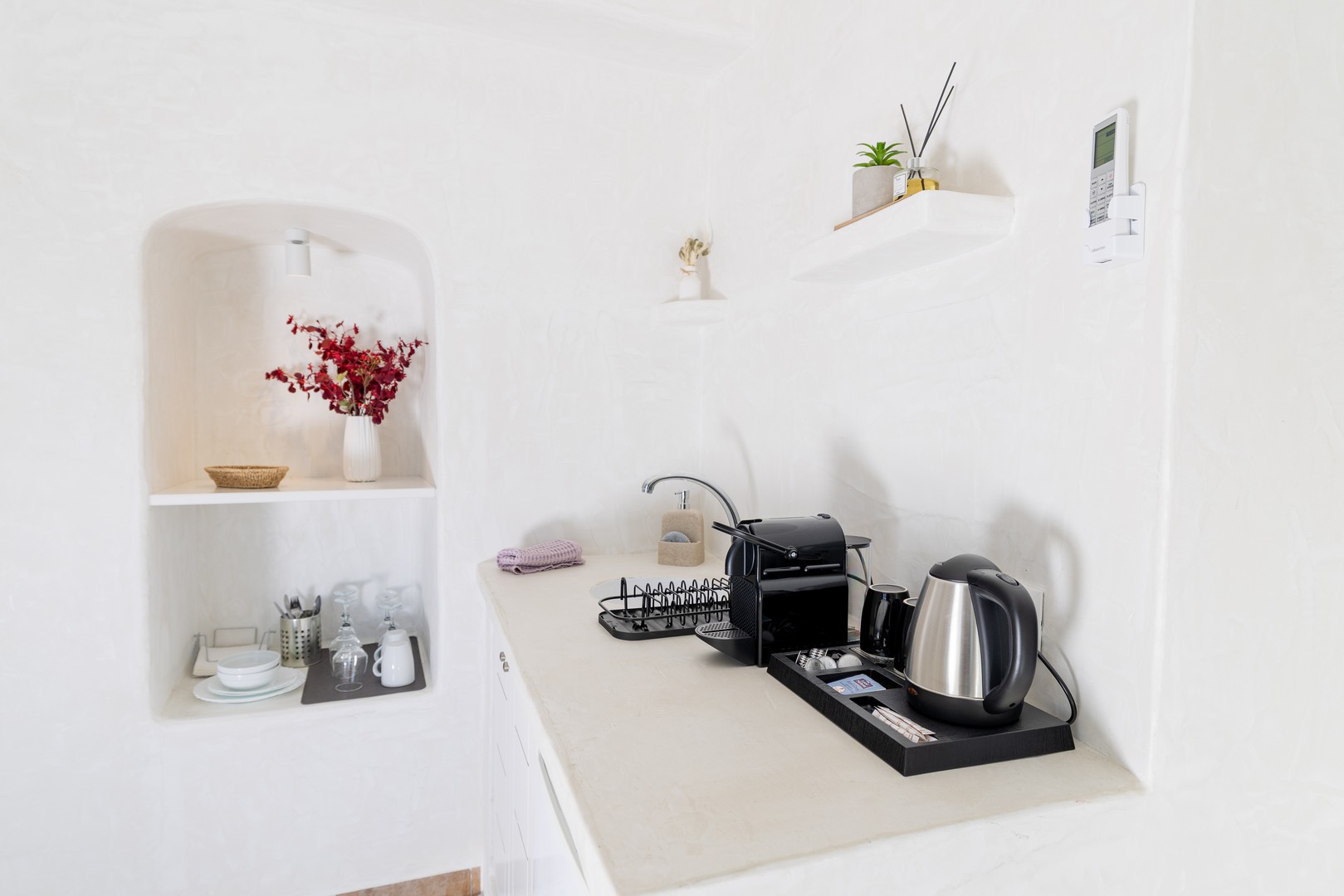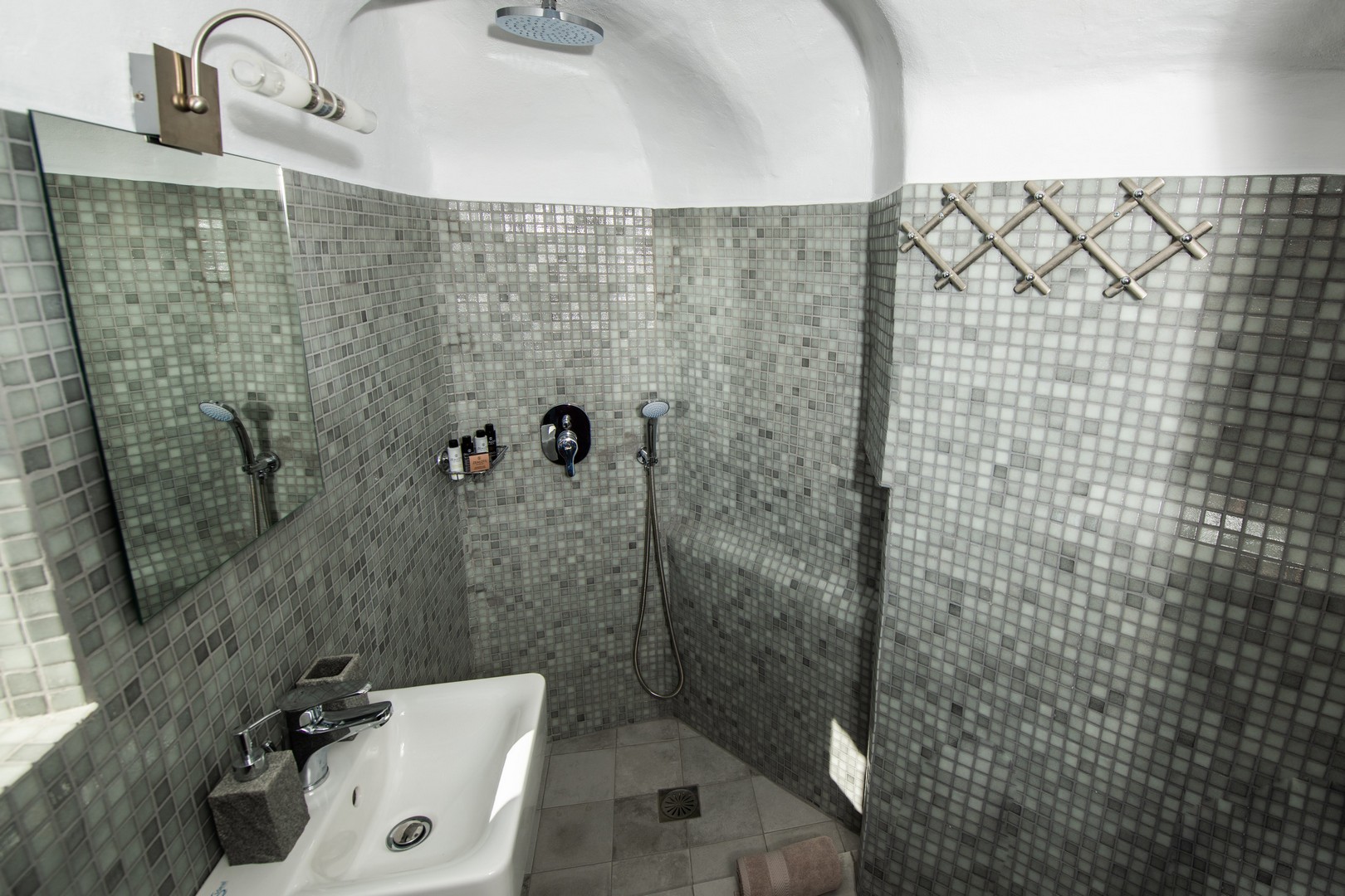 Santo Blue Horizon villa is found in the heart of Oia, at an exceptional location and has an amazing view. The three church domes exactly in front of the villa with the panoramic view have enchanted visitors and photographers from around the world, making it one of the most famous spots of Santorini. The property is in complete harmony with the natural environment of the area, and follows the rules of traditional Cycladic architecture. The villa is made up of two units. One is a traditional house-cave and one a studio, which combined can accommodate up to 7 people. The traditional house is 80sq.m., can accommodate 4 persons and has a private entrance, a big outdoor Jacuzzi for up to 4 persons, a spacious living room, a fully equipped kitchen and 2 bedrooms with a double bed and ensuite bathroom in each. The first bedroom has a large ensuite bathroom with Jacuzzi-hydromassage, while the second bedroom has an ensuite bathroom with shower. The "hot spot" of the traditional cave-house is a tunnel which leads to the upper level where there is a balcony and veranda with a magical view of the Aegean Sea, the Caldera, and is ideal for dinner and relaxation. The second unit of the Santo Blue Horizon villa, is a studio of 25sq.m., which has its own private entrance. It can accommodation up to 3 persons and features a bathroom with shower, a large double bed in a wooden loft and a spacious living room with a single bed. Both units are beautifully decorated and fully equipped. The traditional house-cave and the studio are only available for joint rental, not separately.